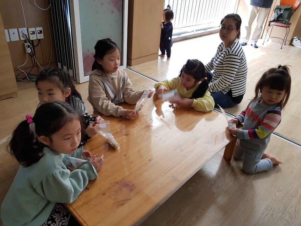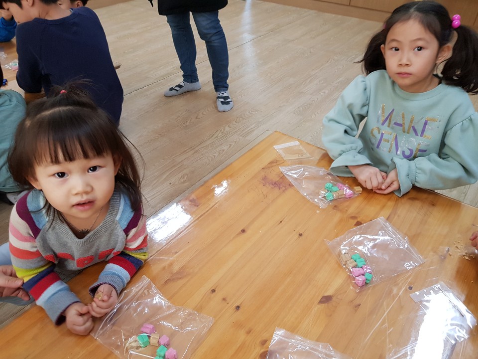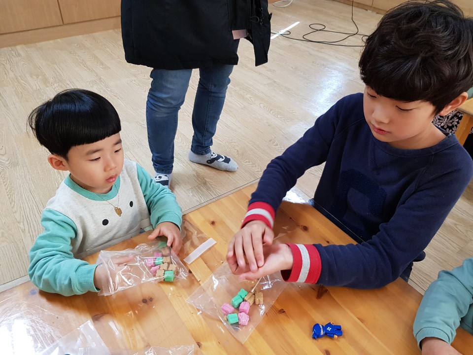 햄버거 모양의 비누를 만들어서 후원하는 아이들에게 보내려고 우리 아이들이 정성껏 만들고 있네요~^^